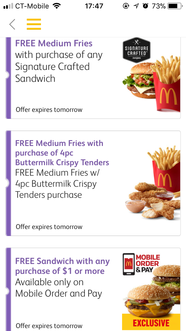 骗你干嘛。美国麦当劳手机应用一直都有提供优惠券,最近更是推出了便宜到哭但只能通过手机下单才能使用的优惠券。所以,善用麦当劳手机应用,顿顿都可以吃得比 Chicken Over Rice 还便宜!(当然,还是不要顿顿都吃辣鸡食品比较好🙄)于是,咱今天就去体验了一番。
